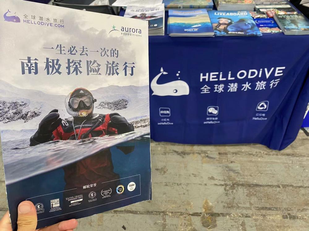 HelloDive's booth, a vibrant hub of activity at the expo, stood out as the premier one-stop destination for divers seeking international diving adventures. From the mesmerising waters of the Great Barrier Reef in Australia to the thrilling shark dives in Fiji, HelloDive presented a diverse portfolio of diving packages catering to every adventurer's dream. Additionally, our feature of Antarctica drysuit ice diving was an exclusive highlight of the entire show.